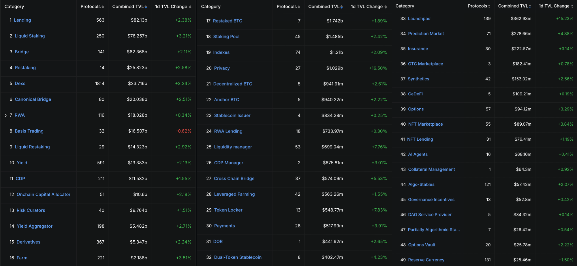 [t7]: RWA. $15b tvl across +100 protocols. ex: Securitize, Superstate