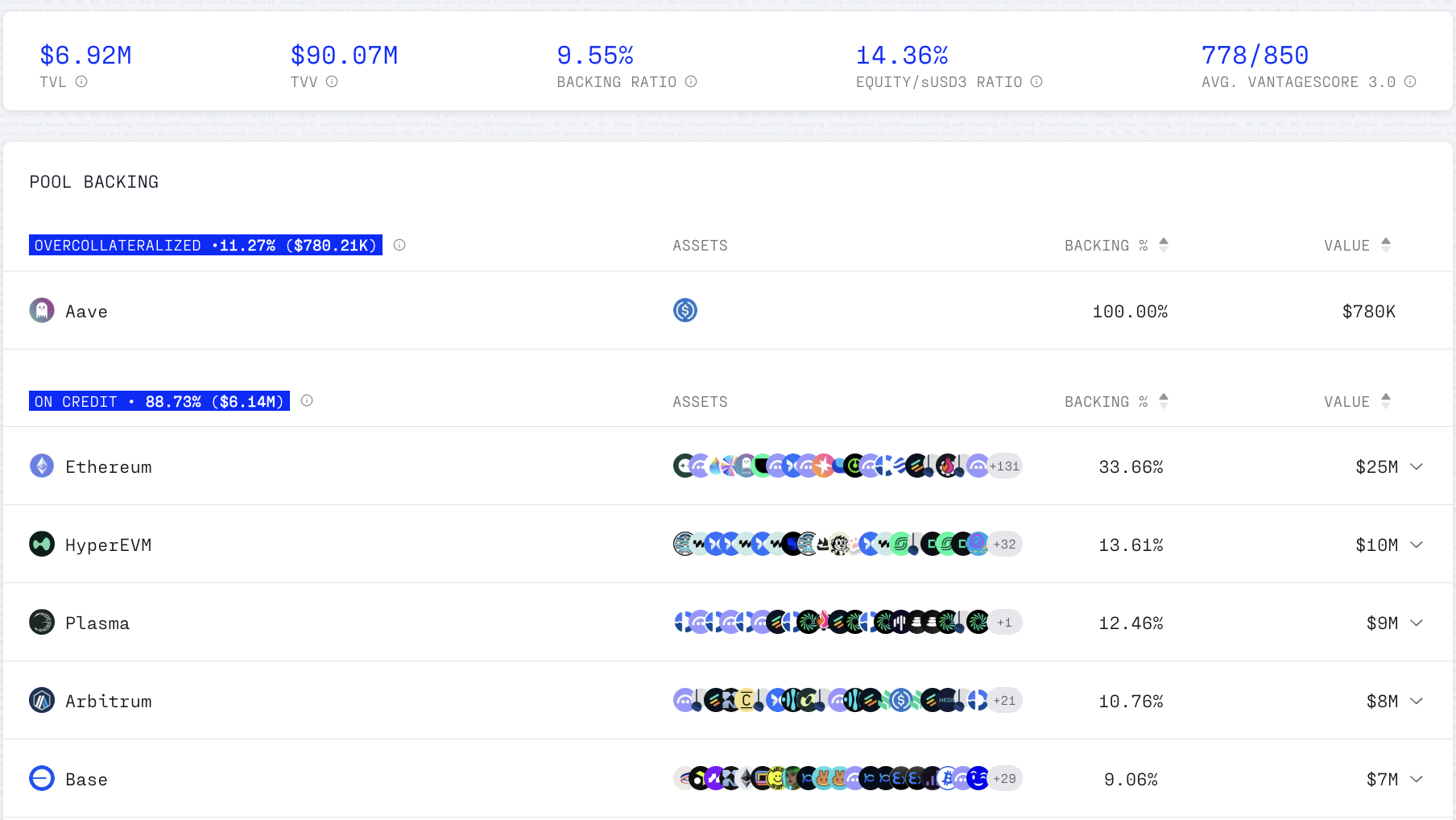 - 9.55% average backing ratio across the 3Jane credit book, weighted by outstanding credit line size