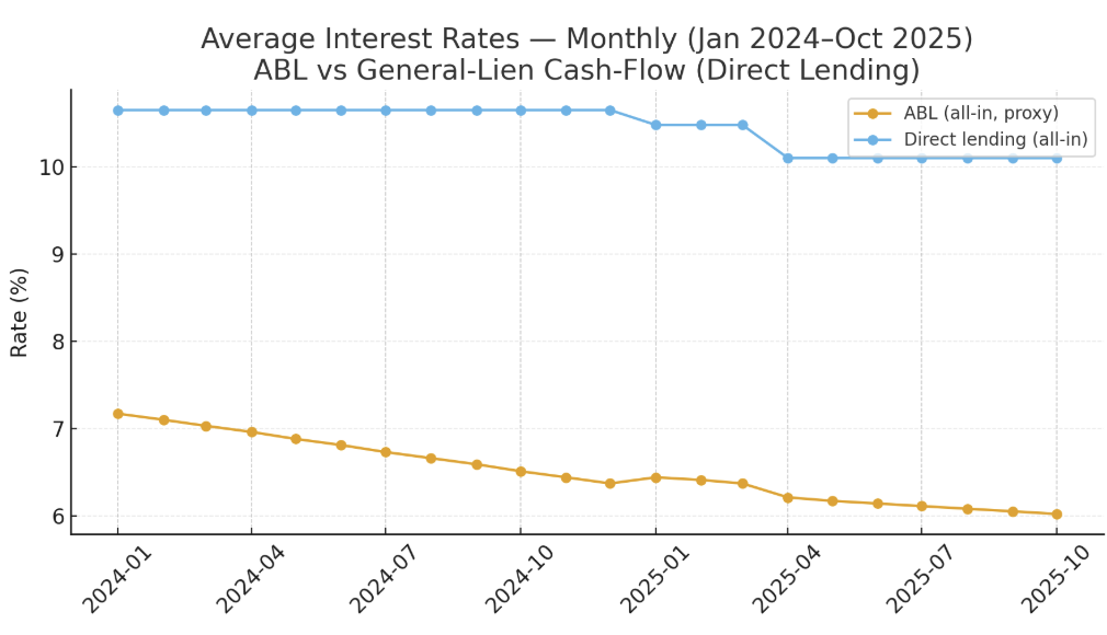 Our ~10% supply APY is the return on productive use of capital - credit that funds farming, hedging, LP, and basis strategies - rather than collateral warehousing. That profile is consistent with how spreads clear offchain: asset-based loans price to collateral and tend to sit near SOFR + ~180 bps, while cash-flow/direct-lending facilities price to execution risk and future capacity at roughly SOFR + ~500 bps, a ~300 bps premium over ABL. The program’s controls - verified capacity/backing-ratio bands, early delinquency markdowns, and NPCL recourse - are intended to keep expected loss = inside that premium, so net yield for suppliers lands in the high single to low double digits without relying on liquidation mechanics.